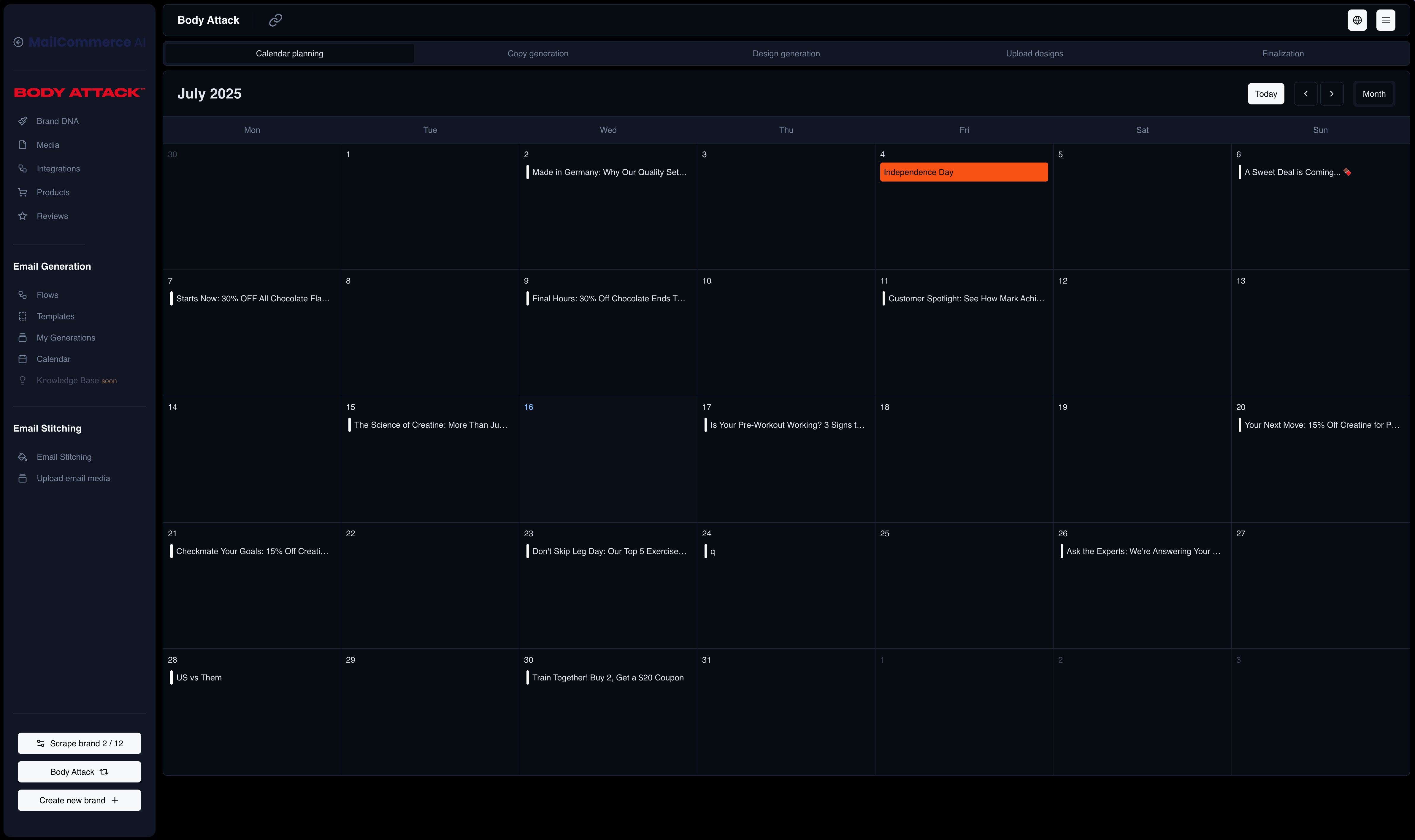 Let AI plan your email calendar with 3-4 emails per week including sales and value emails